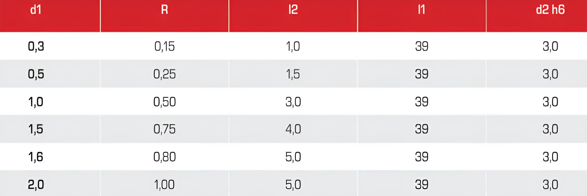 1,2R0,6 x 3 x 38 - d2=3 mm ✓ VHM-Mini-Vollradiusfräser, Z=2, Mikro-Radiusfräser