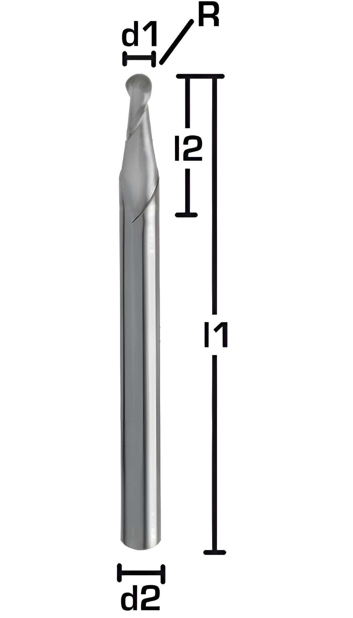 Mobile Preview: VHM-Mini-Vollradiusfräser, Z=2, Mikro-Radiusfräser