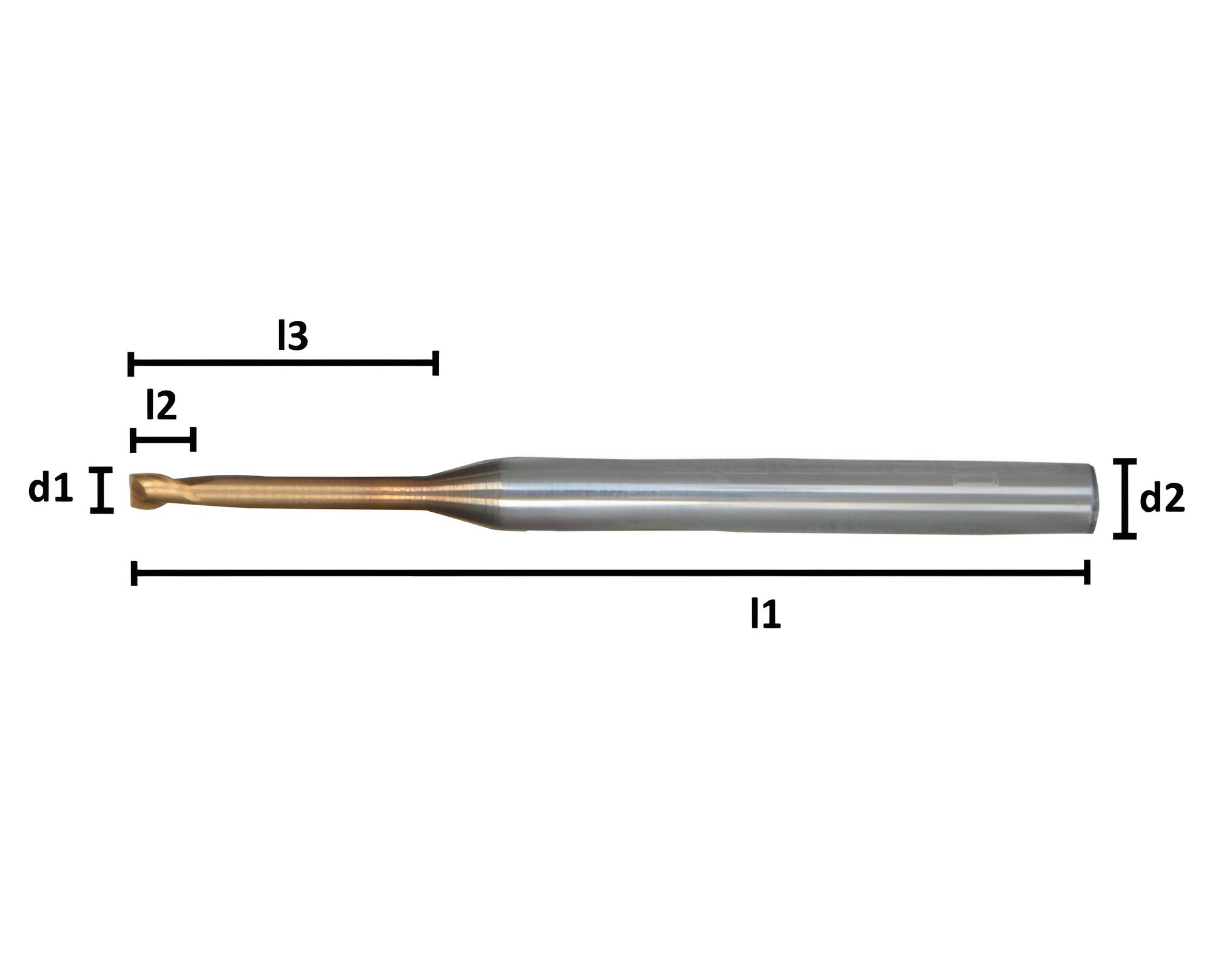 Startseite » 1,5 x 10 x 50 - d2=4 mm ✓ VHM Schaftfräser, Mikrofräser Z=2 TiSiN mit abgestztem Schaft, bis 52 HRC