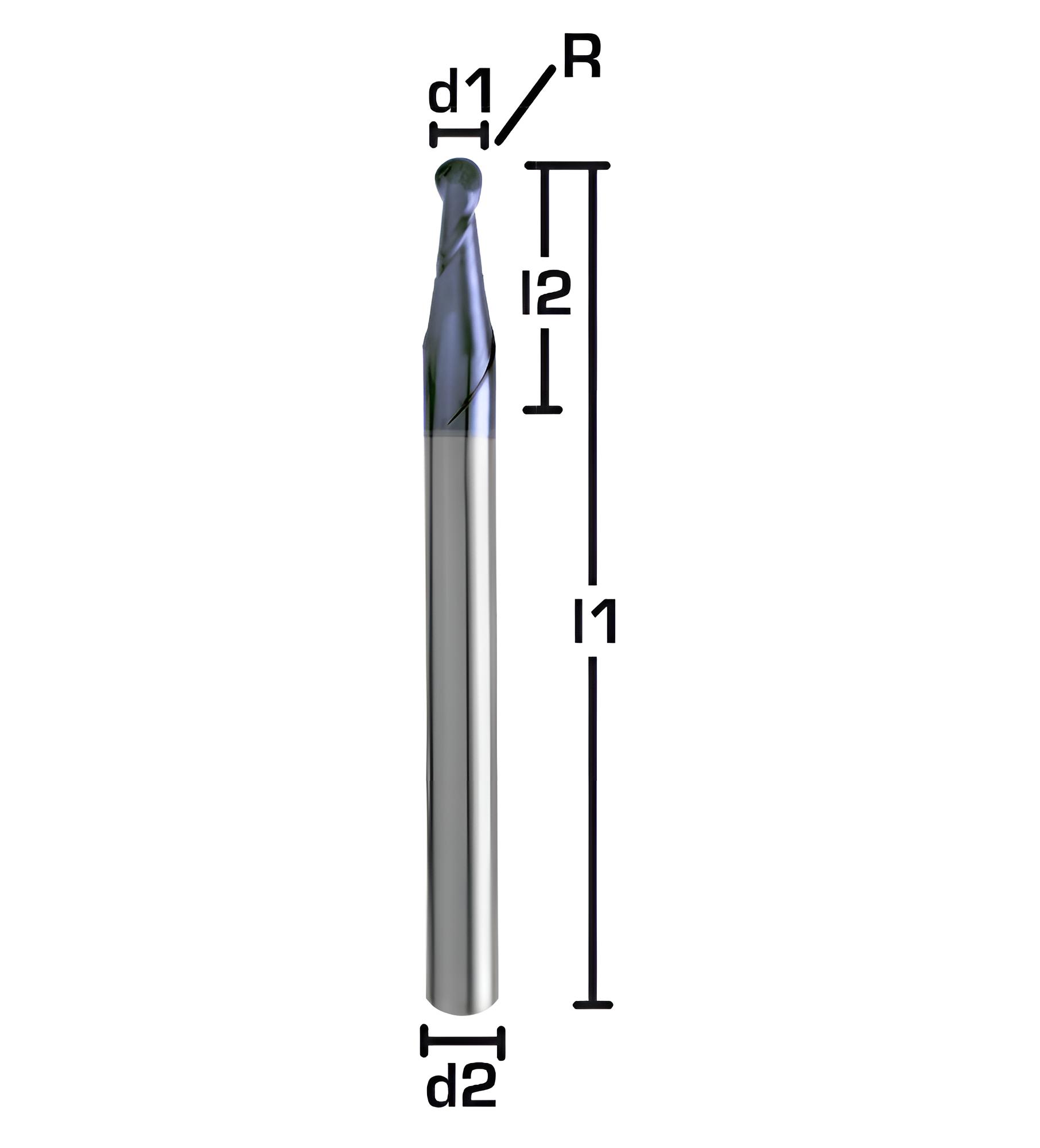 VHM-Mikro-Vollradiusfräser Z=2 Radiusfräser 0,5 - 2,0 mm Beschichtet Mikrofräser