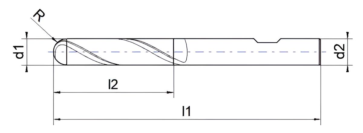VHM Vollradiusfräser, Radiusfräser Z=2 lang mit Tisin Beschichtung