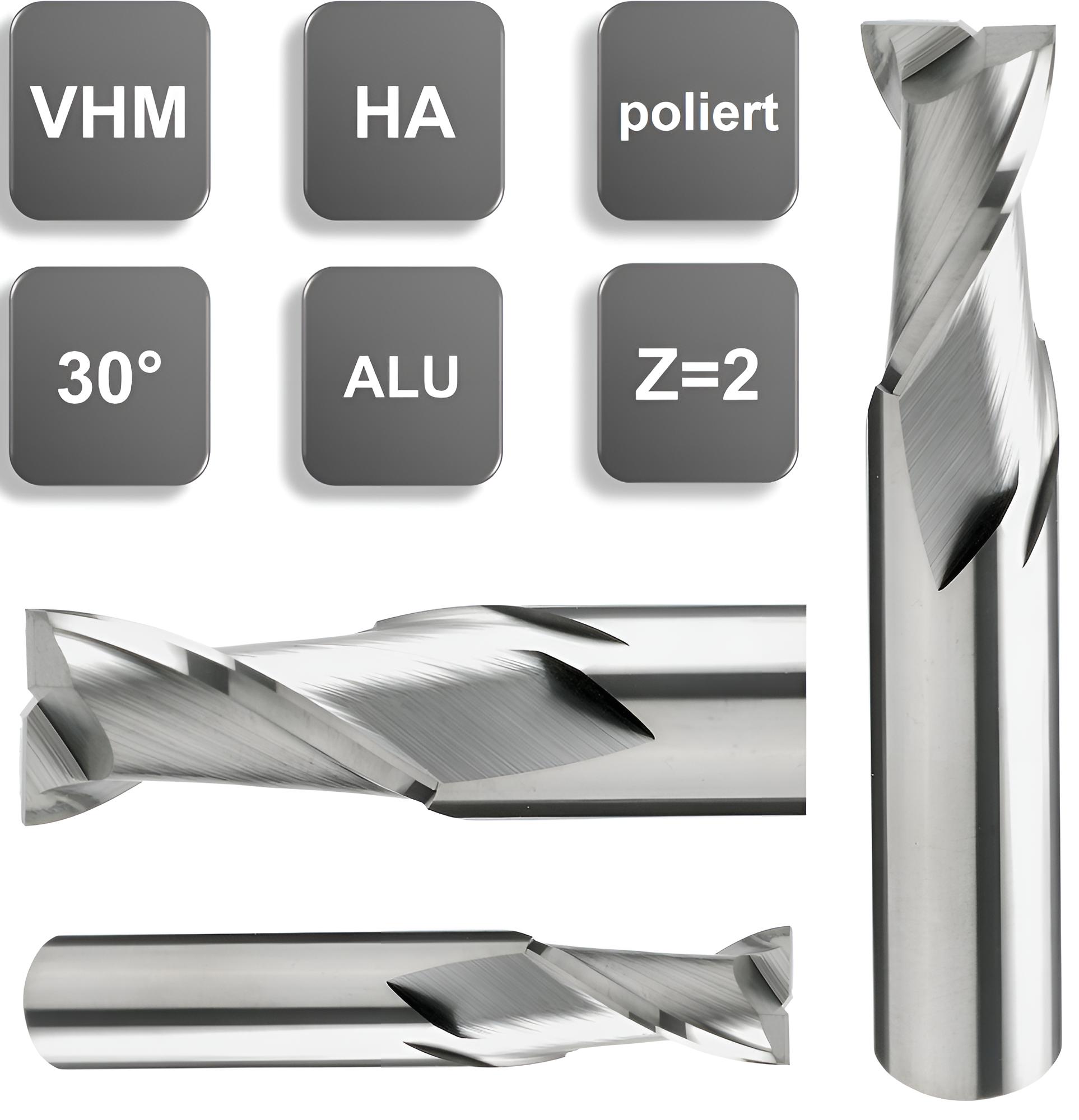 Der VHM Schaftfräser 30°, Z=2, poliert (Art.-Nr.: F.5900.L) hat mehrere wichtige Eigenschaften, die ihn für verschiedene Anwendungen besonders geeignet machen:
