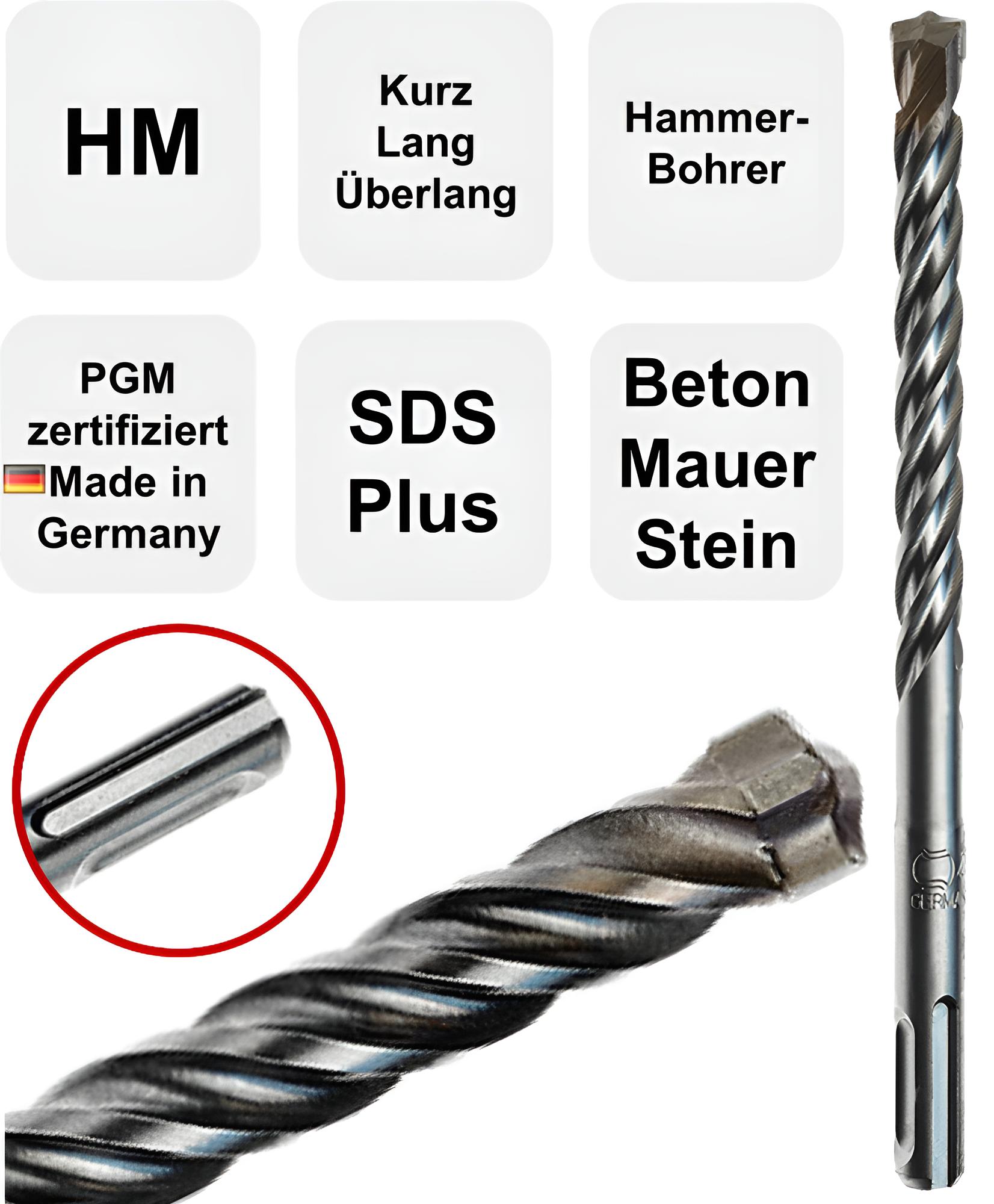 12,0 x 1000 mm ✓ Hammerbohrer SDS Plus Betonbohrer mit 2 HM Schneiden (Z=2), PGM Zertifiziert für Beton, Mauerwerk und armiertem Betron - Made in Germany
