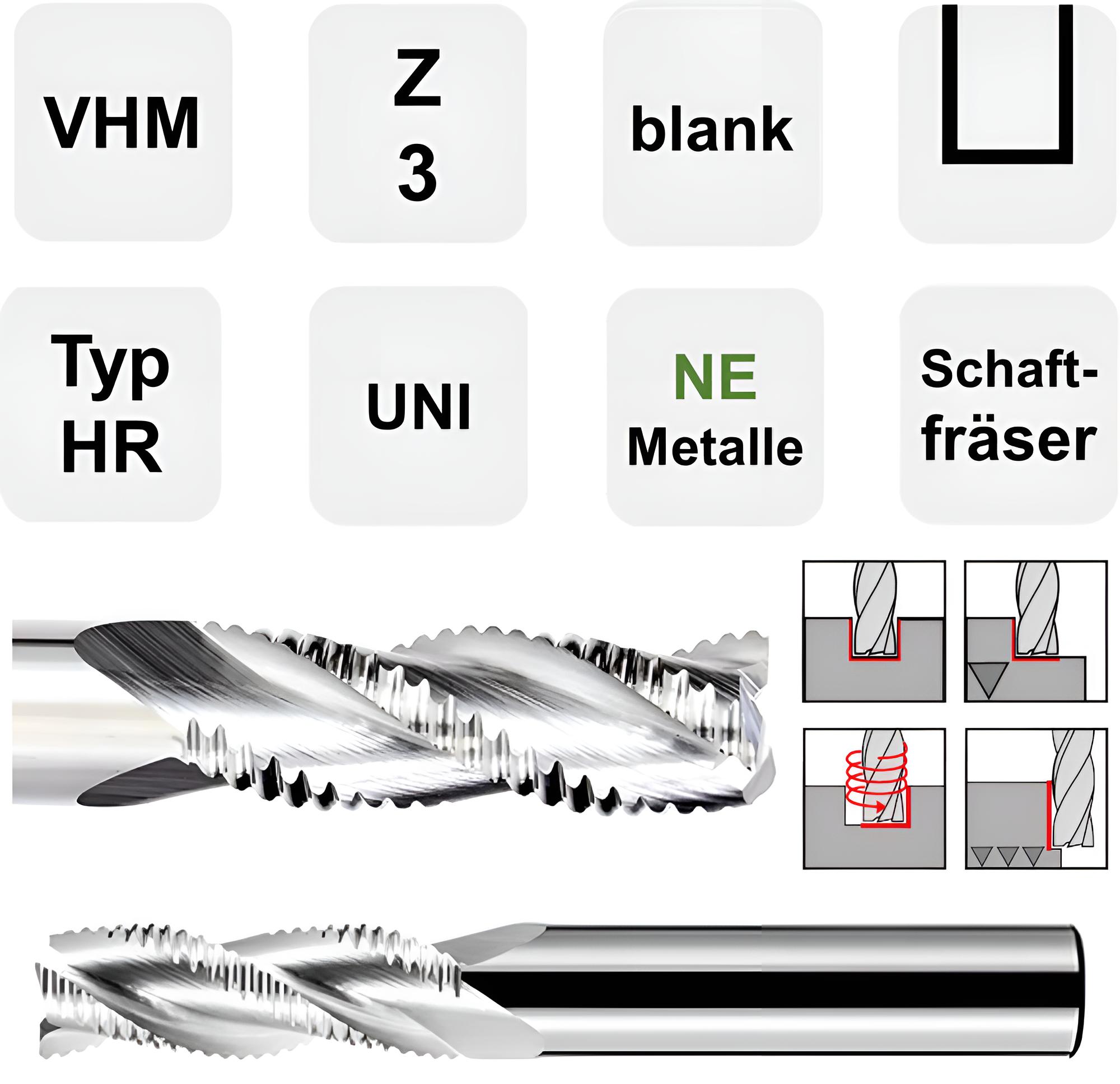 VHM Schruppfräser für NE-Metalle wie Alu, Kupfer, Holz, MDF Fräser Schaftfräser