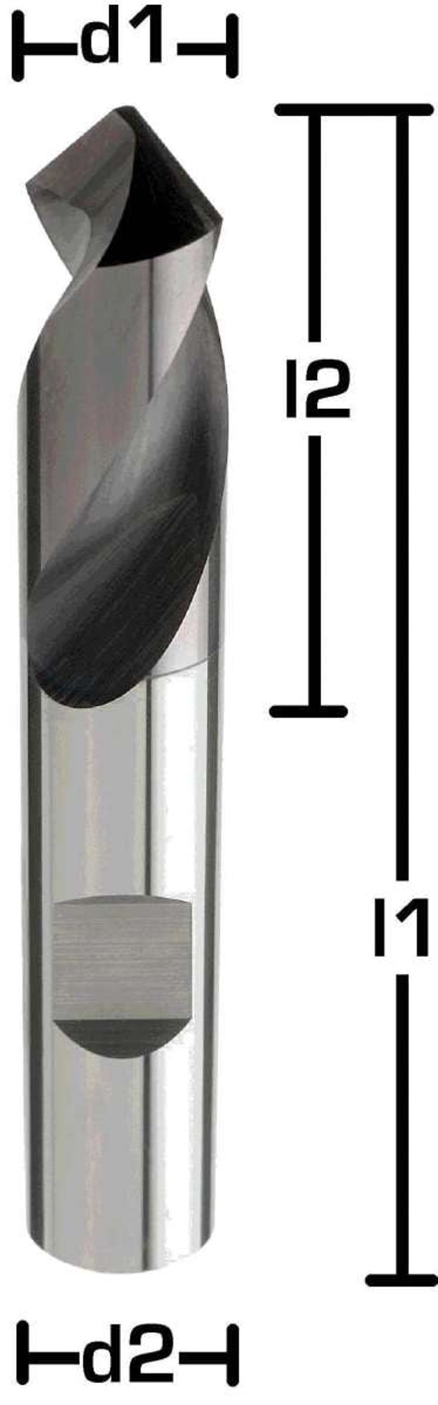 14,0 x 26 x 75 - d2=14 mm ✓ VHM-NC-Anbohrer 90° bis 60 HRC, TiAlN-Beschichtet mit HB Schaft