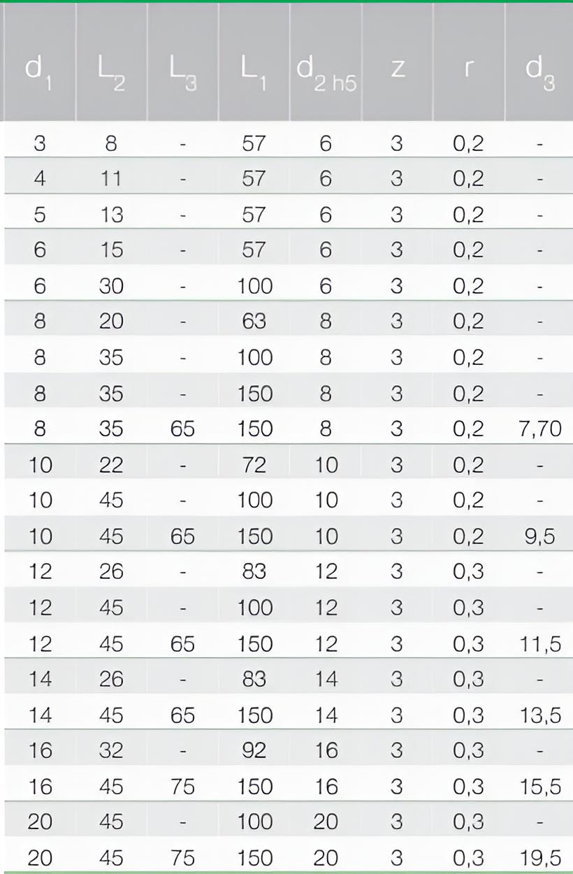 - Die Angabe Z=3 bedeutet, dass der Fräser drei Schneiden hat. Dies sorgt für einen gleichmäßigen Materialabtrag und ermöglicht eine effiziente Bearbeitung bei gleichzeitig guter Laufruhe.