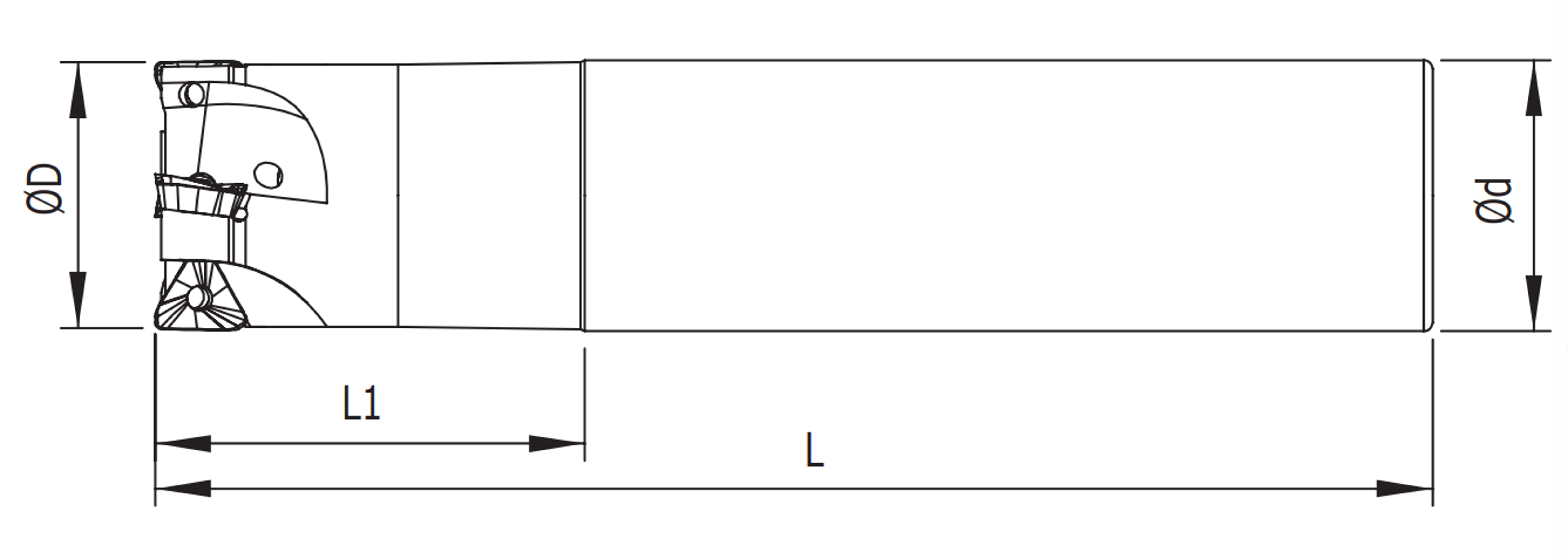 Schaftfräser, High-Feed Wendeplattenfräser, Hochvorschubfräser für LOGU 0303 mit Innenkühlung