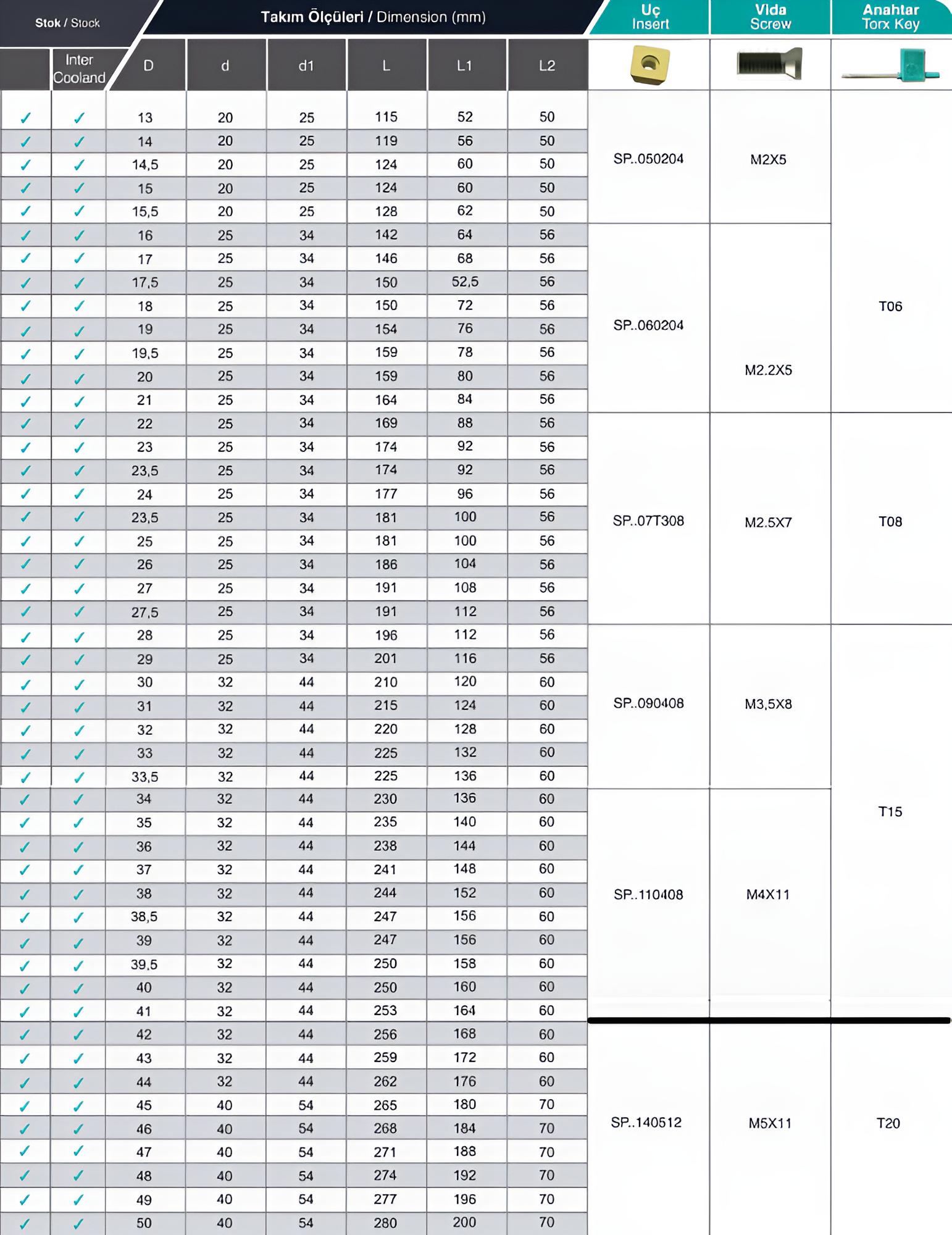 Das Kühlmittel wird durch den Bohrerinneren direkt an die Schneidstelle geführt. Dies verbessert die Kühlung, reduziert Hitzeentwicklung und verlängert die Standzeit des Werkzeugs.Für SPMG / SPMT Bohrwendeplatten: