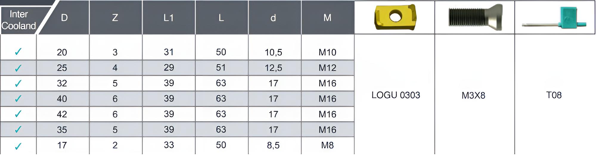 17 mm - Z=2 ✓ Einschraubfräskopf (Modular), Messerkopf, Planfräser für LOGU0303 KYCR mit IK
