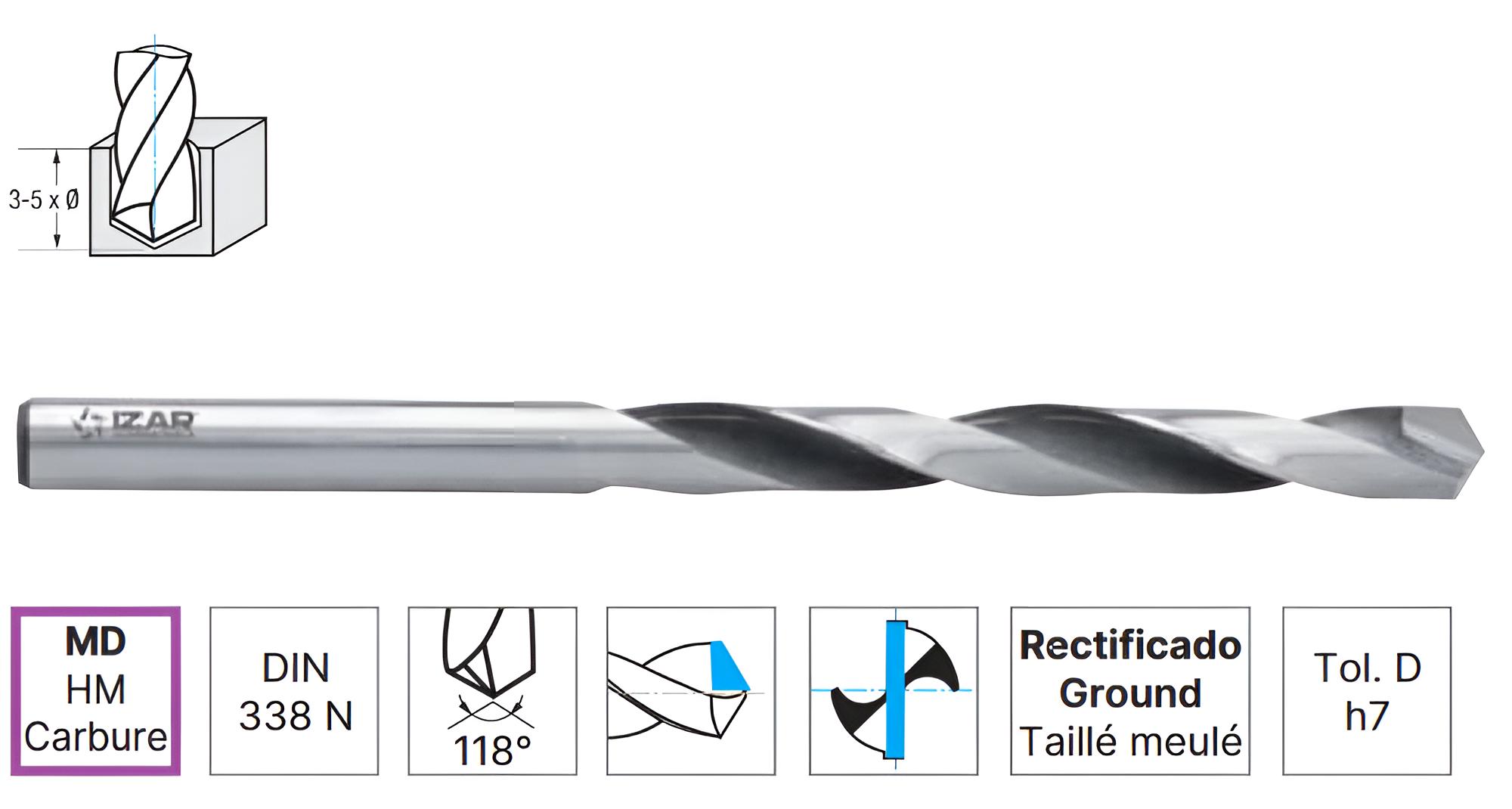 Preview: 2,0 x 24 x 49 - d2=2 mm ✓ HM Bestückter Spiralbohrer DIN338, Metallbohrer Typ N, VHM Bohrer, 118°