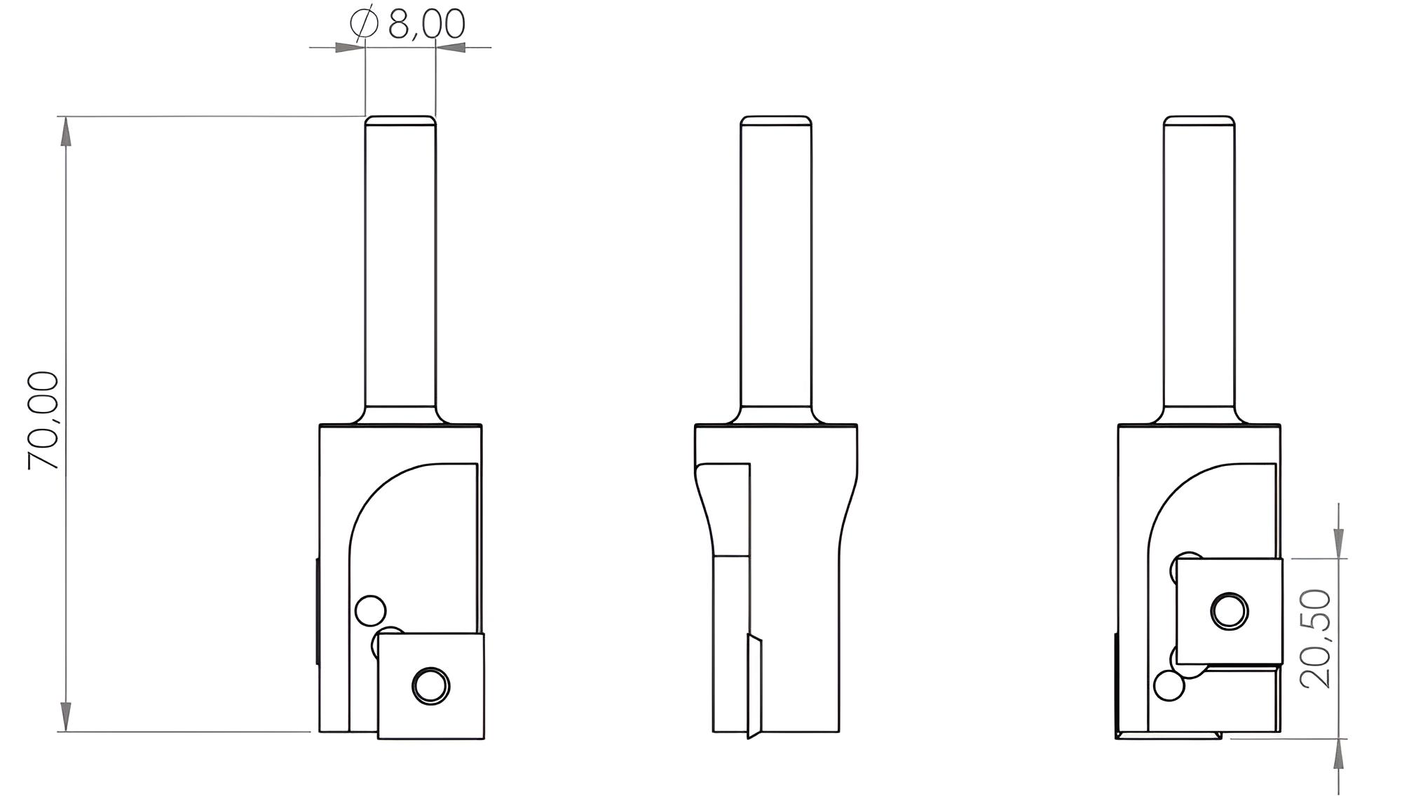 » 20 x 20,5 - Schaft 8 mm ✓ HM-Bestückter Wendeplattenfräser, Planfräser mit WP-Klingen, Wendemesser, Schaftfräser Z=2 für Hartholz, Weichholz, Plastik & Spanplatten