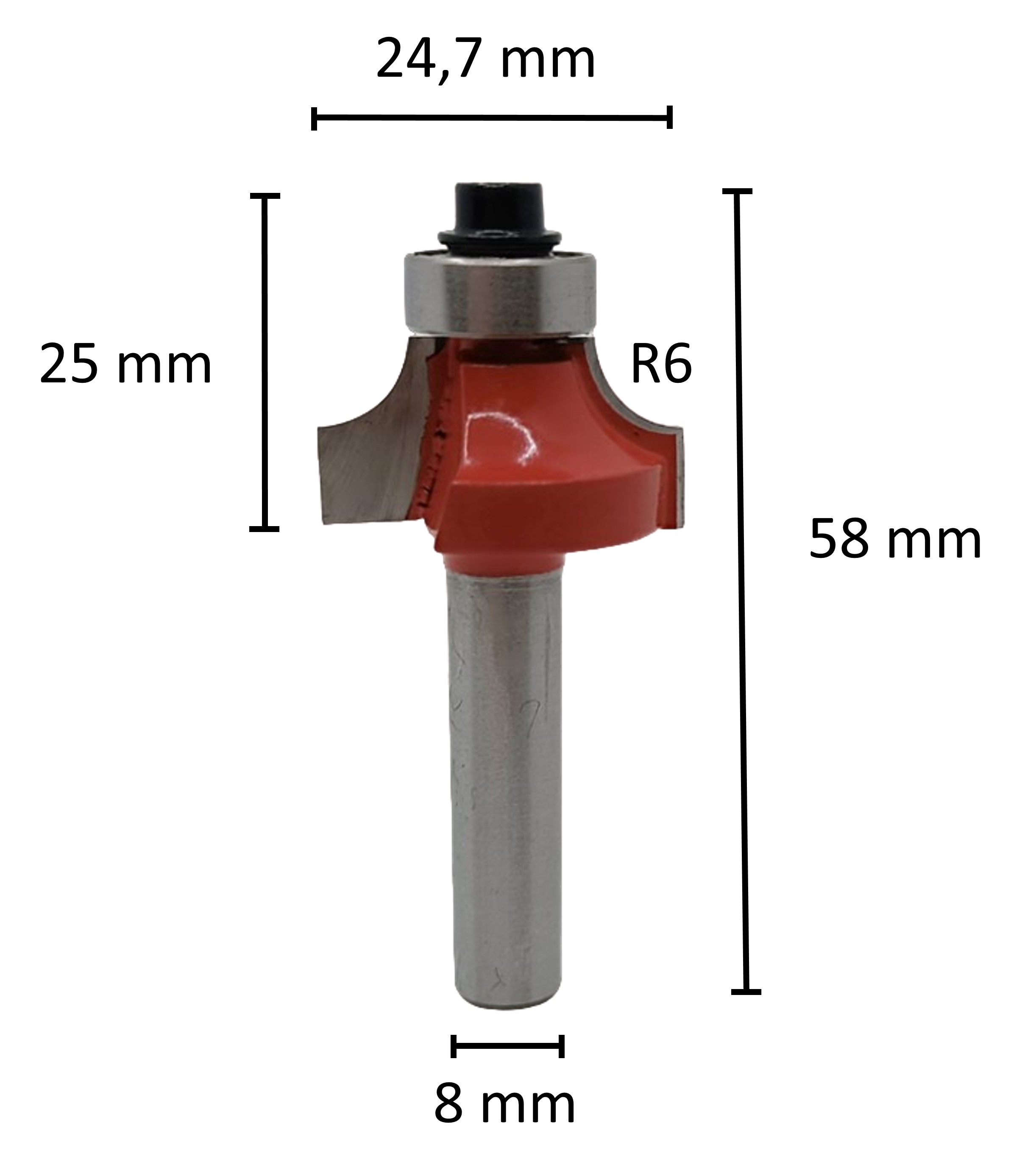 24,7 mm R6 ✓ HM Konkavfräser, Holzfräser, Bündigfräser, Routerbit, Oberfräser, Profilfräser mit Kugellager d2=8 mm für Oberfräse