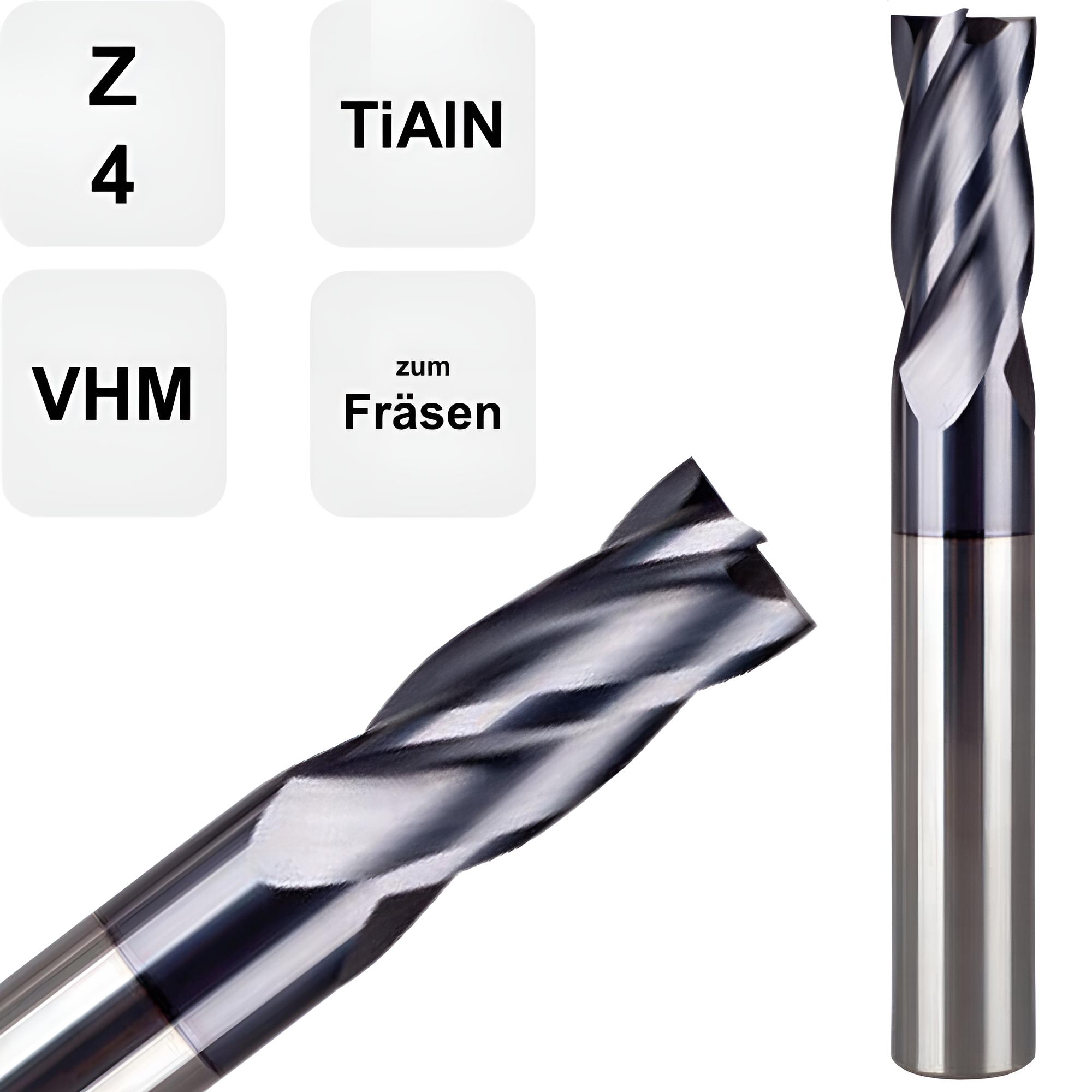 VHM Fräser, Schaftfräser mit AlCrN Spezialbeschichtung, Universalfräser Z=4
