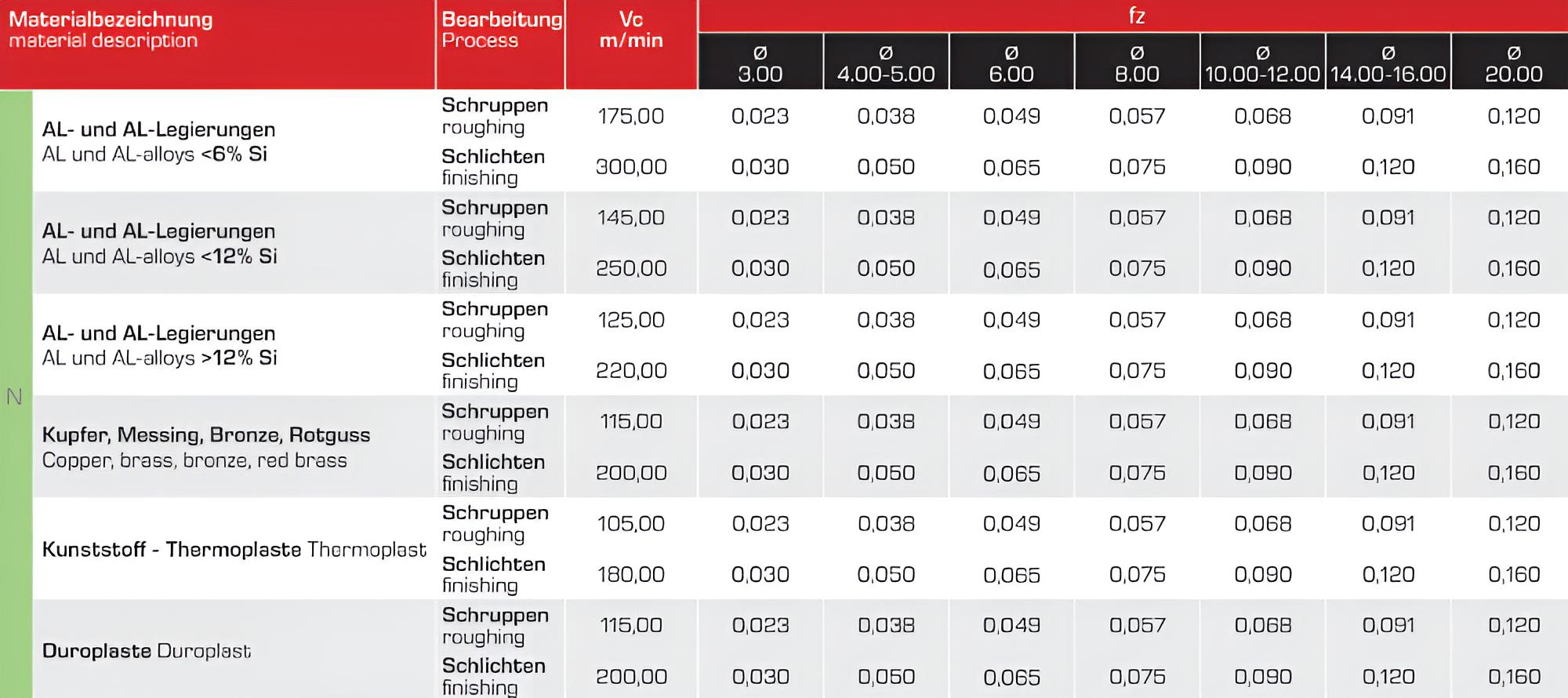 - Universell einsetzbar, insbesondere geeignet für NE-Metalle wie Aluminium sowie für VA (Edelstahl) und Stähle bis zu 800-900 N/mm².