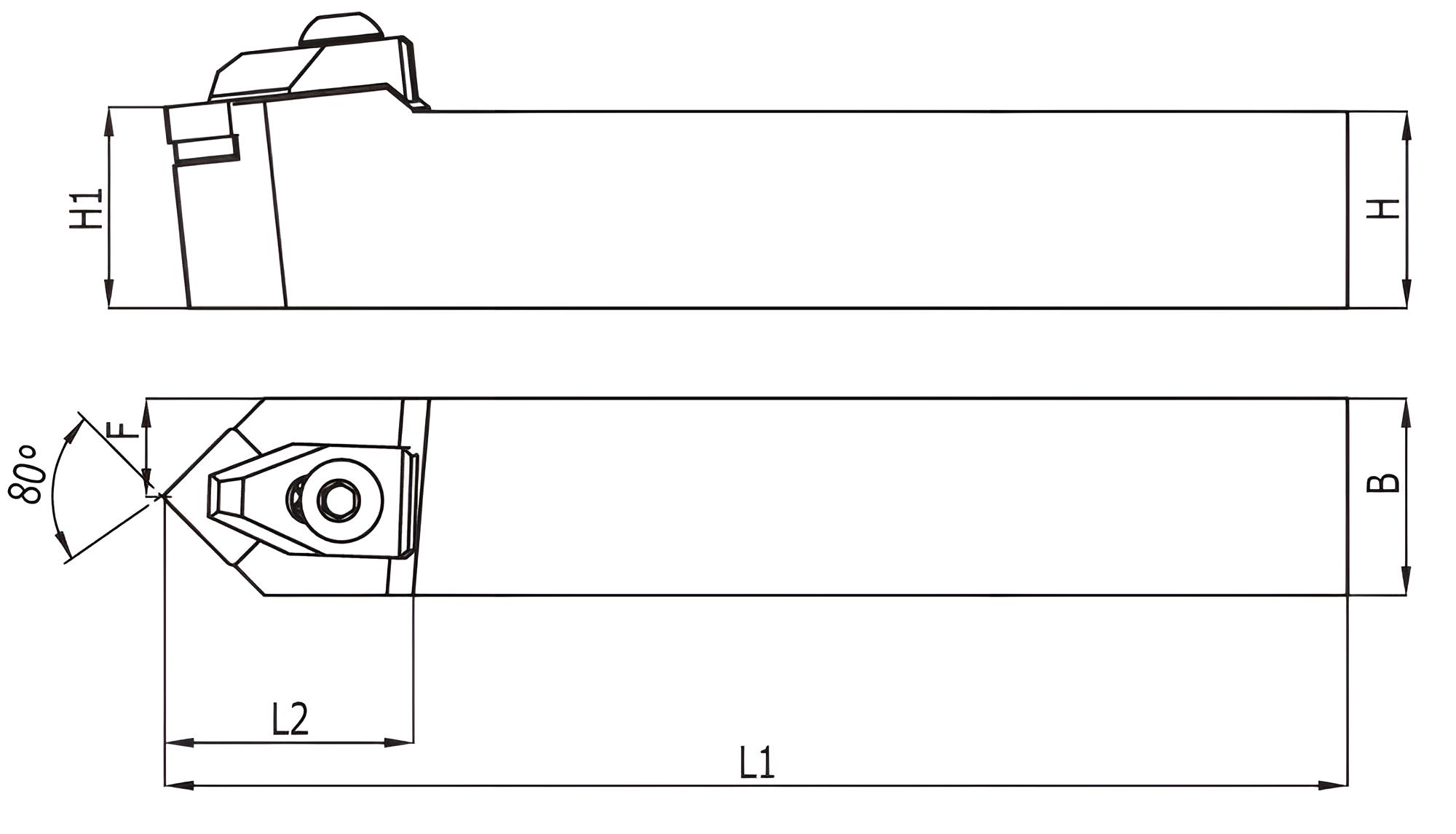 Mobile Preview: 32 x 32 x 170 TCZNN ✓ Drehhalter 80° Neutral für CNMG12 Wendeplatten
