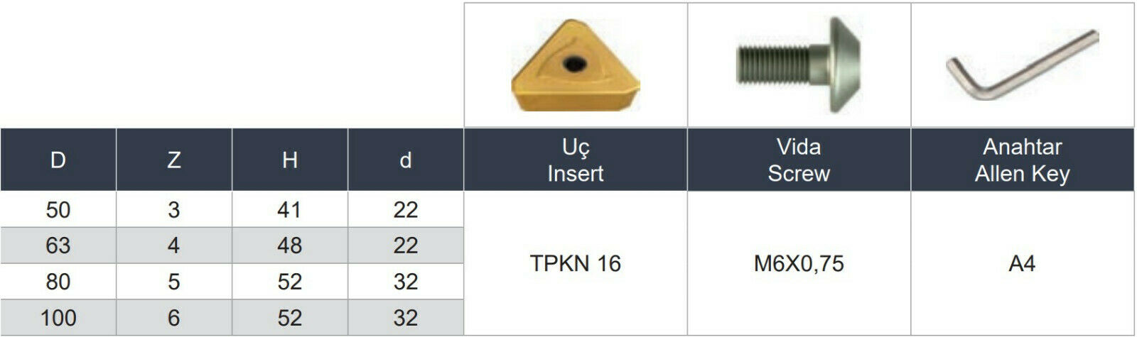 50 mm - Z=3 ✓ Eckfräser Messerkopf 90° für TPKN16 Wendeplatten