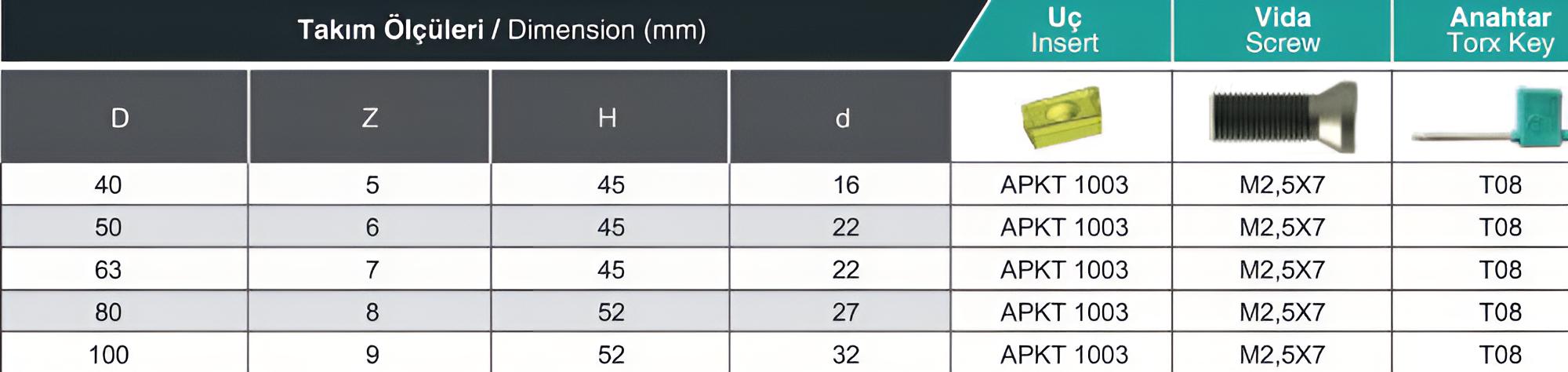 - Kompatibel mit gängigen APKT1003-Wendeplatten