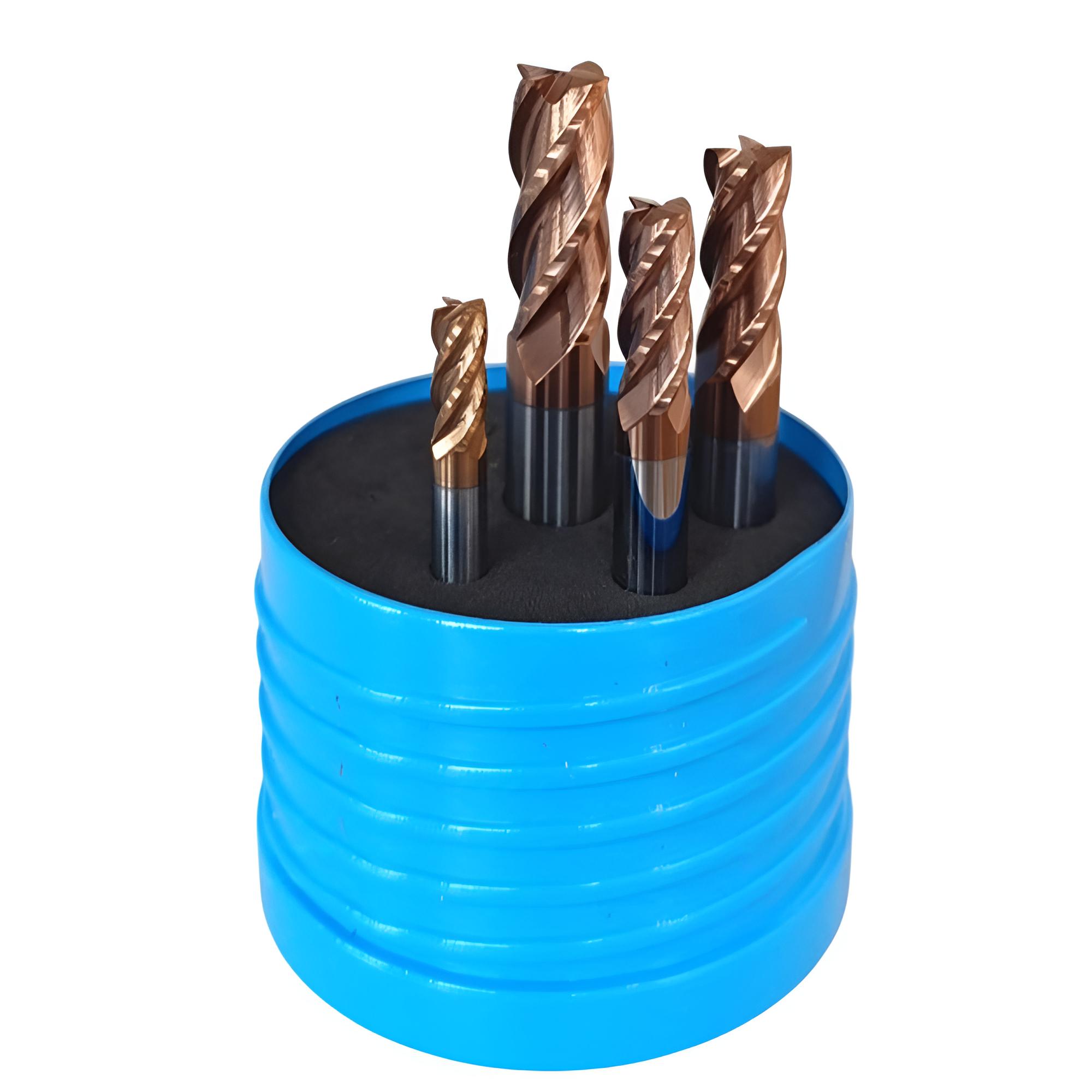 Startseite » Fräsen » CNC Fräser » 6 / 8 / 10 / 12 mm ✓ VHM Fräser-Satz, Universal-Schaftfräser im SET 30°, Z=4 mit TiSiN Beschichtung für Werkstoffe bis ca. 52 HRC im Rundbox