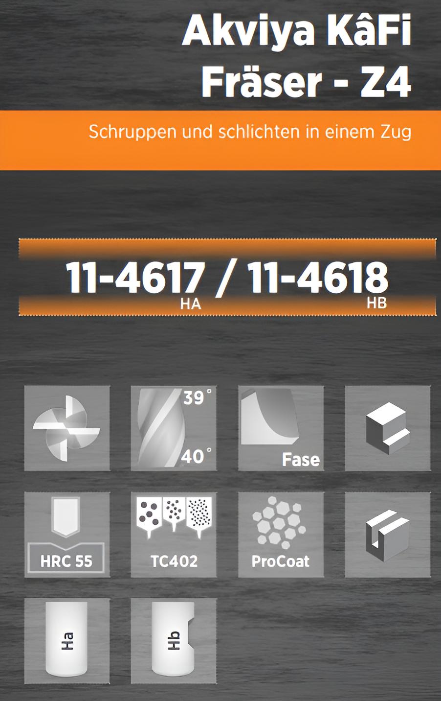 Dank seiner zwei unterschiedlichen Schneidekanten ermöglicht der Akviya KâFi® von TURCAR eine nahtlose Durchführung beider Fräsprozesse sowohl Schruppen als auch Schlichten und bietet somit eine optimale Lösung für anspruchsvolle Bearbeitungsaufgaben.