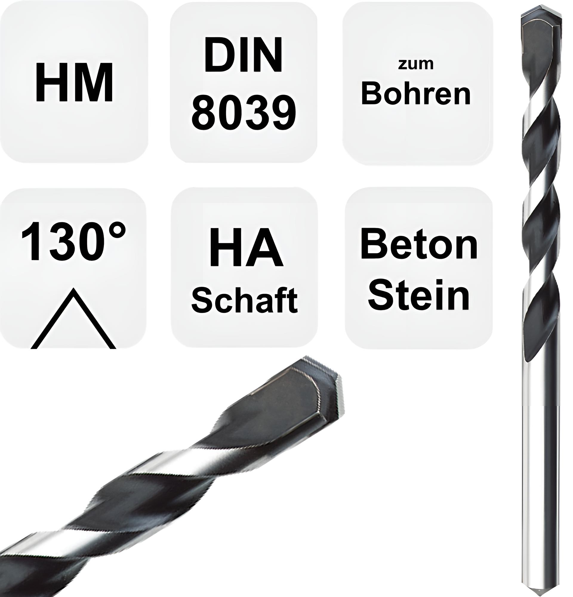Betonbohrer, Hartmetallsteinbohrer, Steinbohrer DIN8039, Spiralbohrer, Mauerbohrer mit 130° HM-Spitzenwinkel
