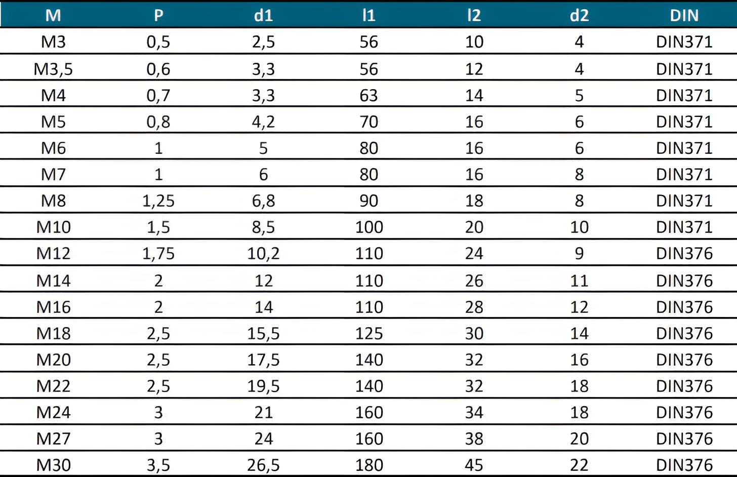 - DIN371 - Schaftdurchmesser größer als Durchmesser (M2-M10)