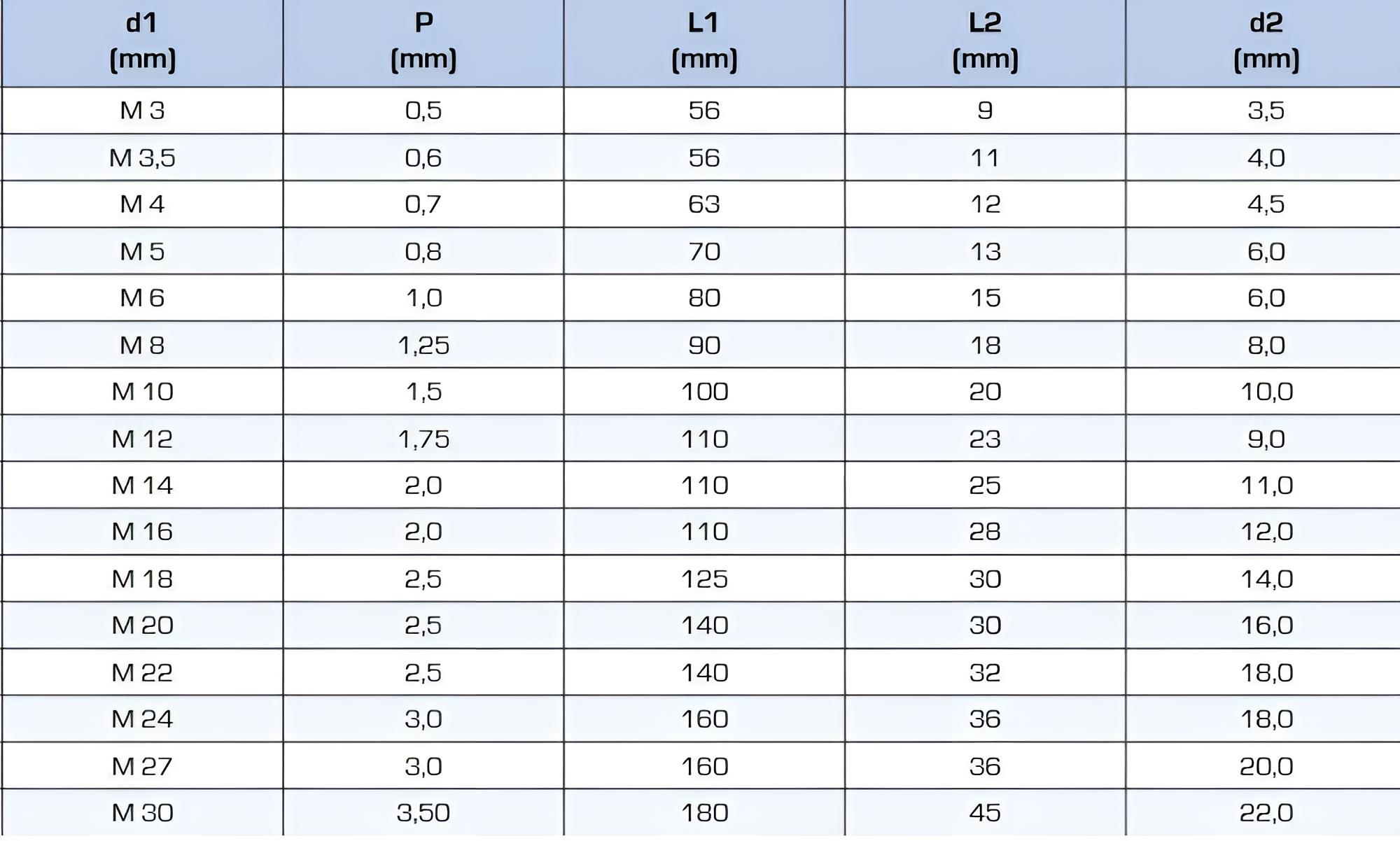 - M2 / M2,5 / M3 / M3,5 / M4 / M5 / M6 / M8 / M10 / M12 / M16 zur Auswahl