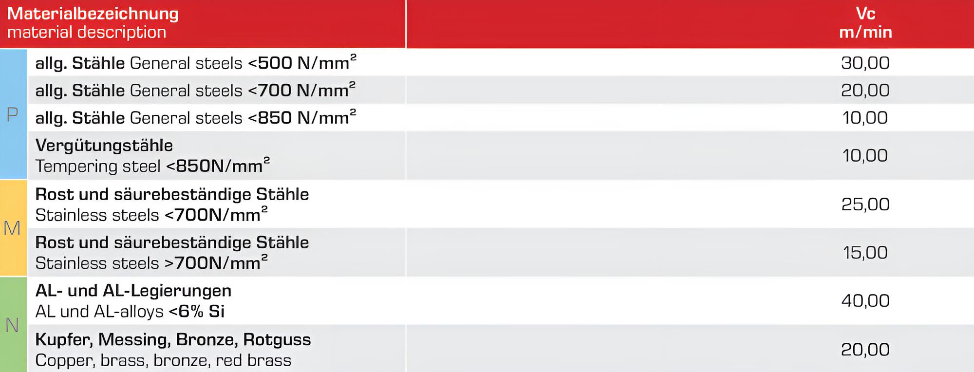 Schnittwerte HSSE/PM-Gewindeformer, Gewindefurcher DIN371, Form C, 6HX, TIN-beschichtet zum Innengewindeformen