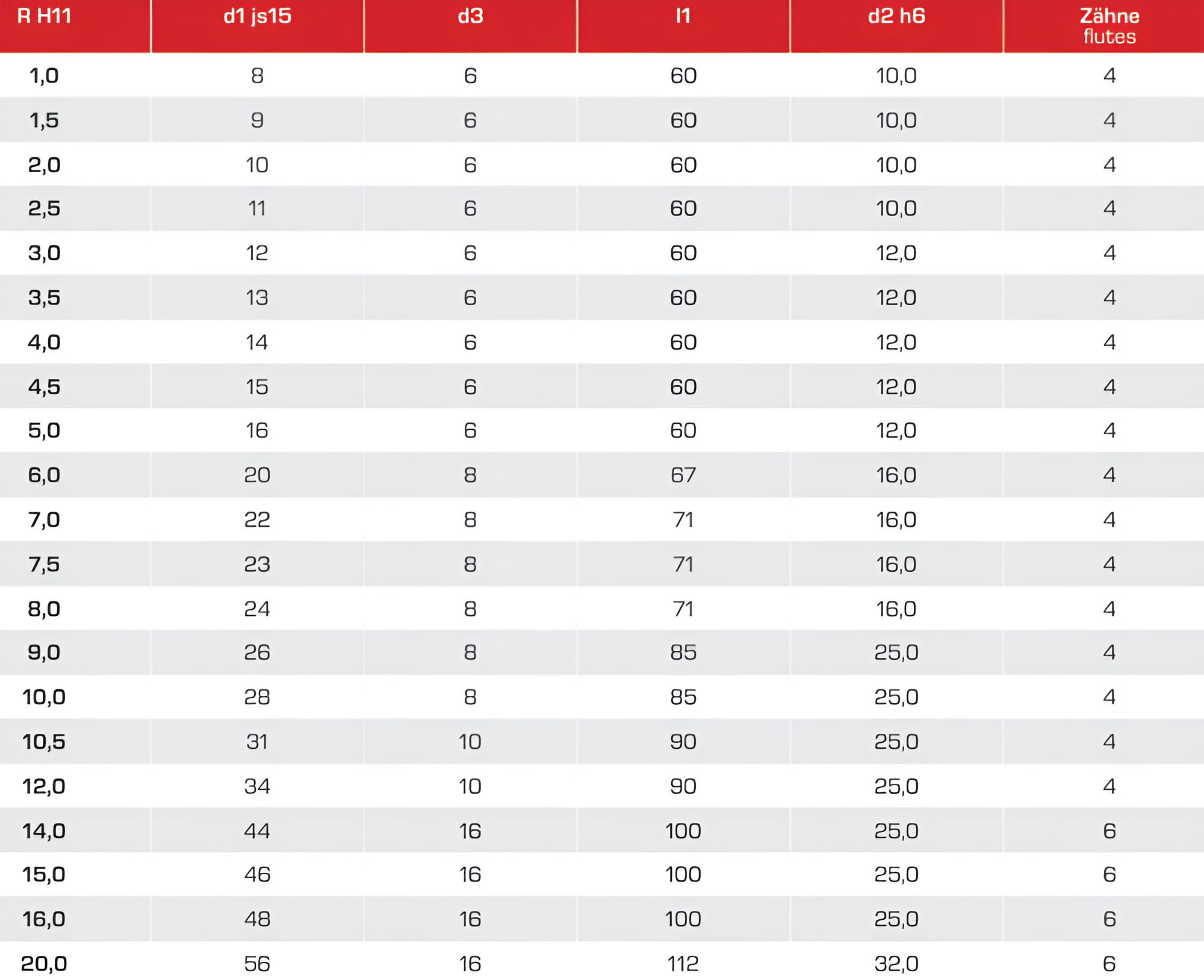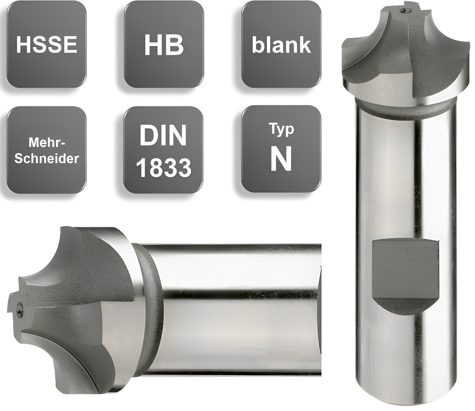 HSSE-Viertelrund-Profilfräser, DIN 6518, Viertelkreisanschliff
