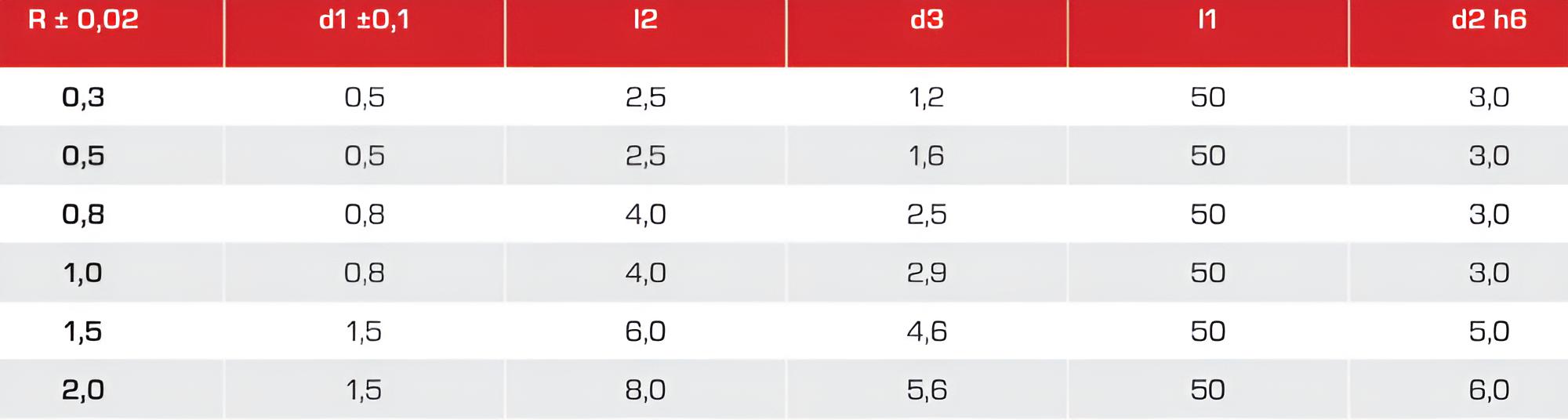 R0,3 x 0,3 x 50 - d2=3 mm ✓ VHM Mikro-Viertelkreisfräser Z=2, Konkavfräser, Profilfräser für abgerundete Fasen durch Viertelkreis-Anschliff